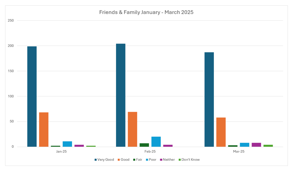 Here is the statistic graph of the our patient feedback between January and March 2025. >>>